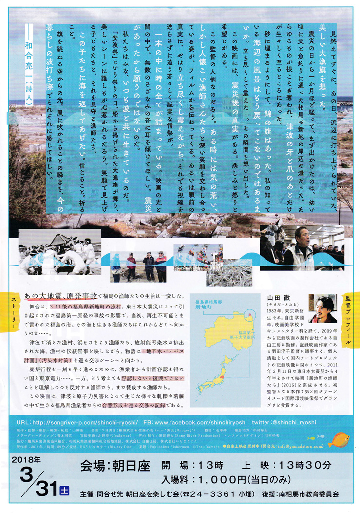 この映画は、津波と原子力災害によって生じた様々な軋轢や葛藤の中で生きる福島県漁業者たちの合意形成を巡る交渉の記録である。