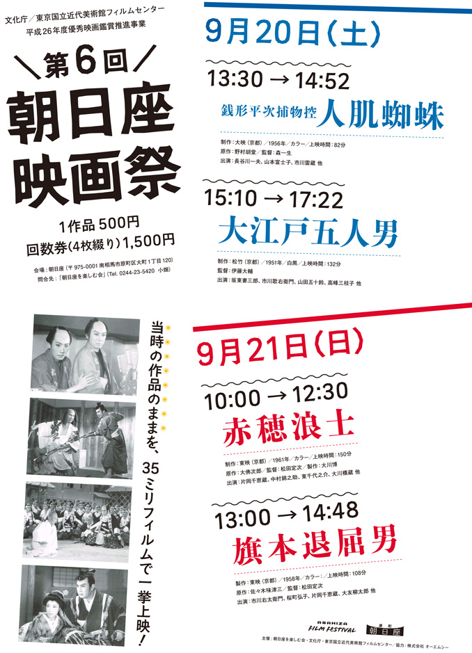 http://asahiza.blog.shinobi.jp/Entry/56/9/20-21 第六回「朝日座映画祭」